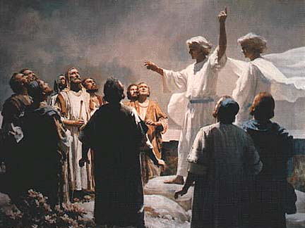 "Y estando ellos con los ojos puestos en el cielo, entre tanto que él se iba, he aquí se pusieron junto a ellos dos varones con vestiduras